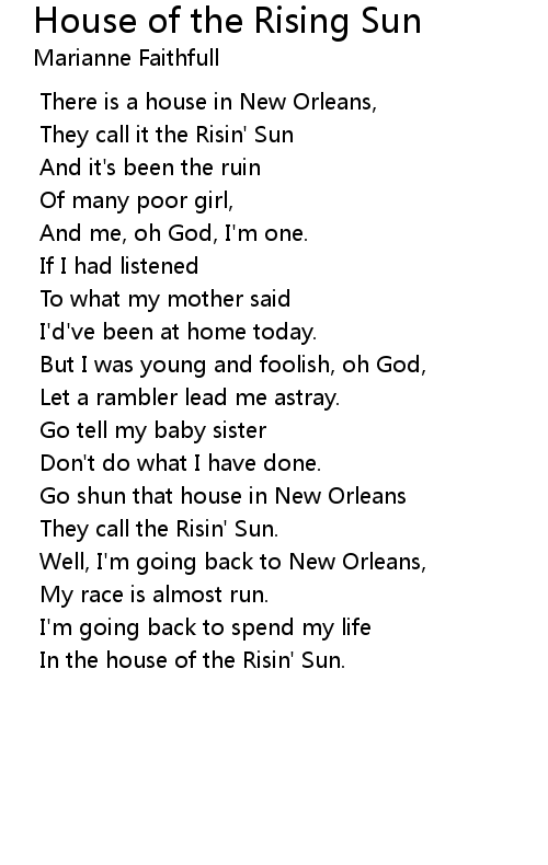| Song | House of the Rising Sun |