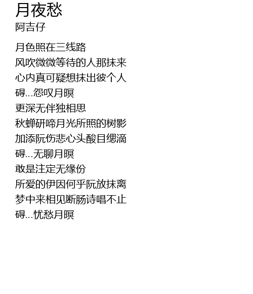 | [01:46.96] | 秋蝉研啼月光所照的树影 |