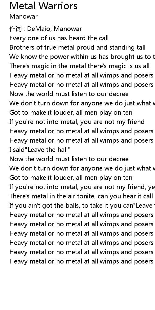 | Heavy metal or no metal at all wimps and posers leave the hall |