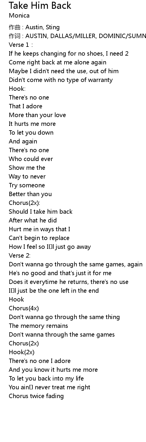 | Song | Take Him Back |