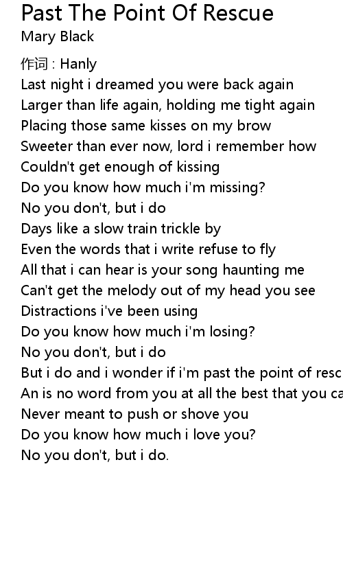 | But i do and i wonder if i' m past the point of rescue | |