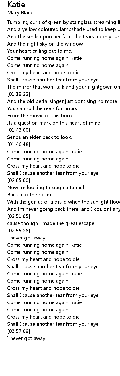 Come running home again, katie |