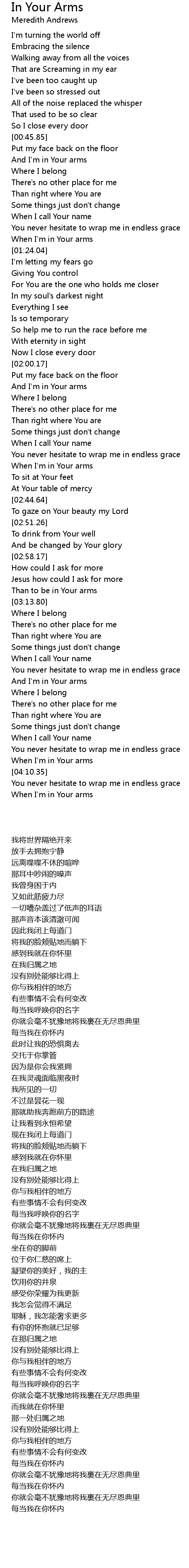 And I'm in Your arms |
