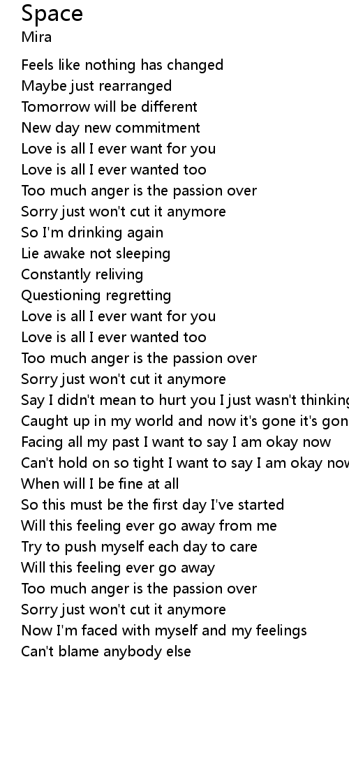 | Facing all my past I want to say I am okay now | |