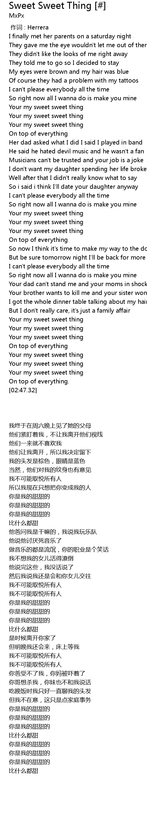 | [02:37.98] | Your my sweet sweet thing |