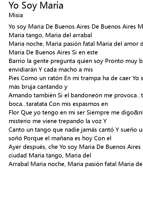 | Maria noche, Maria pasio n fatal Maria del amor de Buenos Aires soy yo Yo soy Maria De Buenos Aires Si en este | |