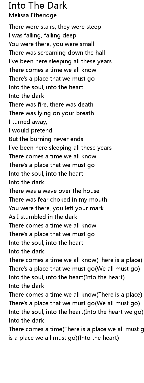 There comes a time(There is a place we all must go)(Into the heart, Lord)(There is a place we all must go)(Into the heart) |