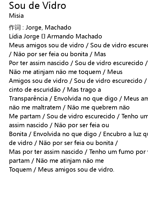 | Transpar ncia Envolvida no que digo Meus amigos sou de vidro Por isso n o me maltratem N o me quebrem n o | |