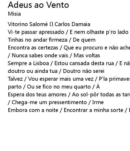 | Encontra as certezas / Que eu procuro e não achei / Sei que vais partir do cais / Nunca sabes onde vais / Mas voltas | |