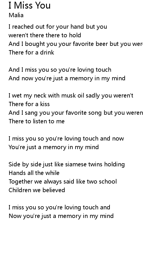 I miss you so you're loving touch and |