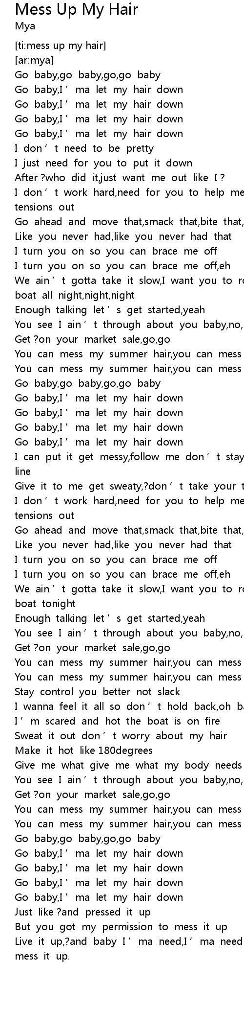 | [00:14.843] | Go baby, I ' ma let my hair down |