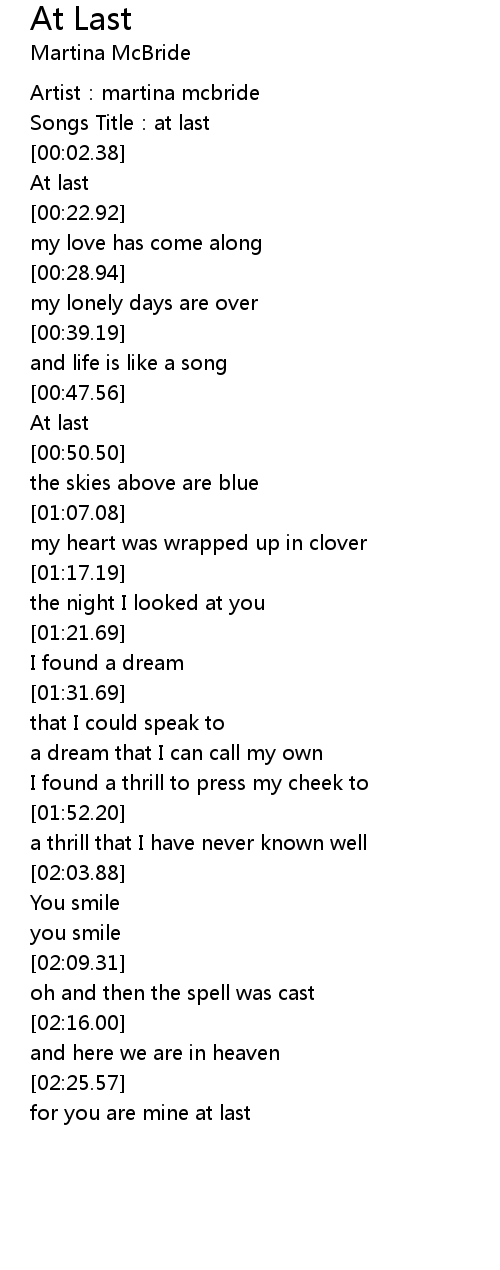 | [00:01.07] | Songs Title: at last |