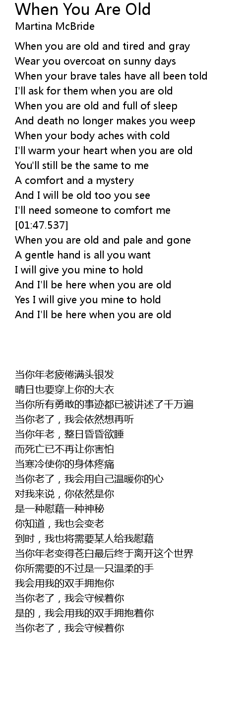 And I'll be here when you are old |