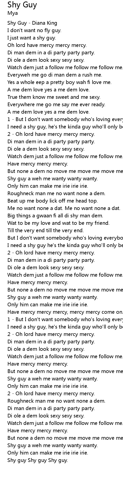 | [00:53.67] | I need a shy guy, he′s the kinda guy who′ll only be mine. |