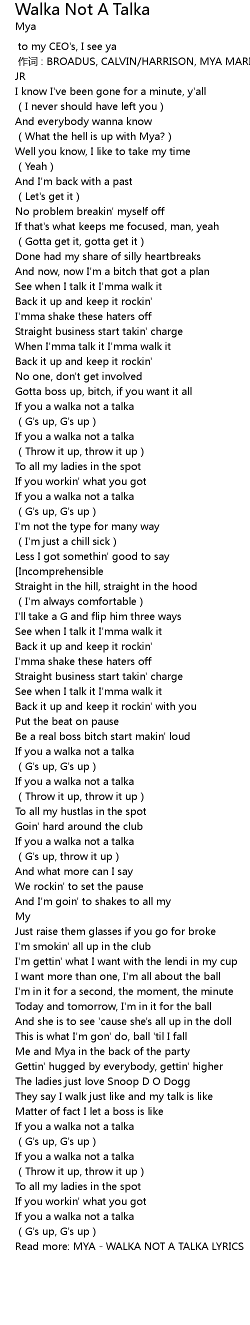 | [03:10.92] | Read more: MYA - WALKA NOT A TALKA LYRICS |