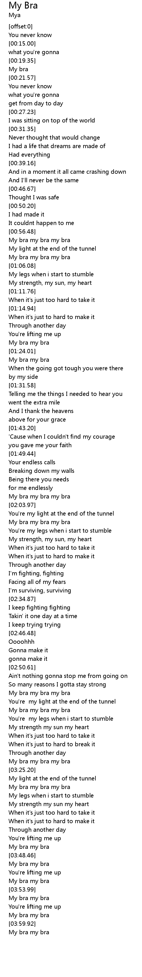 | [01:03.80] | My bra my bra my bra |