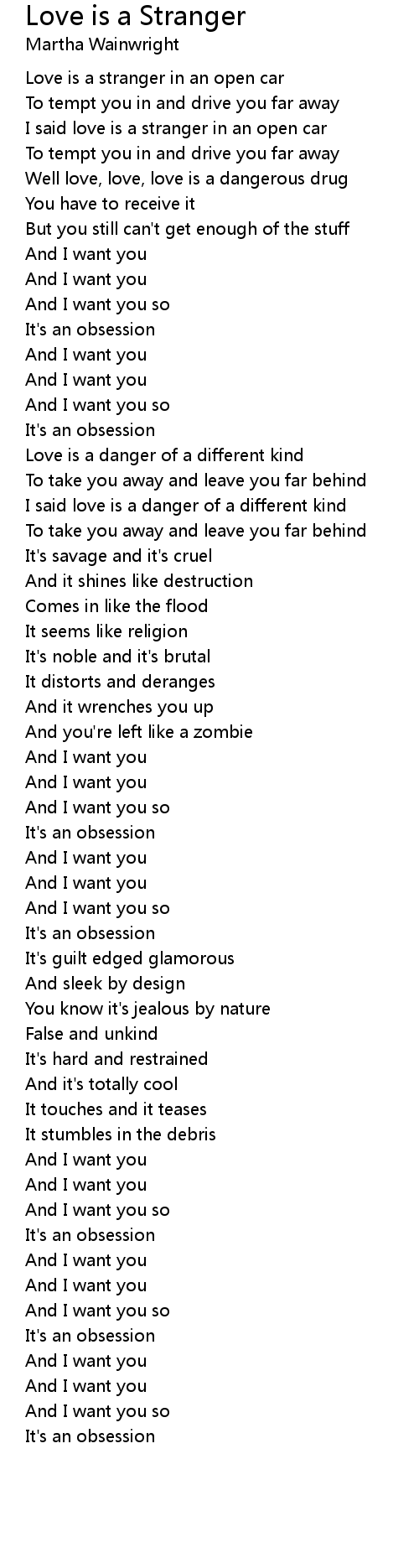 Love is a stranger in an open car |