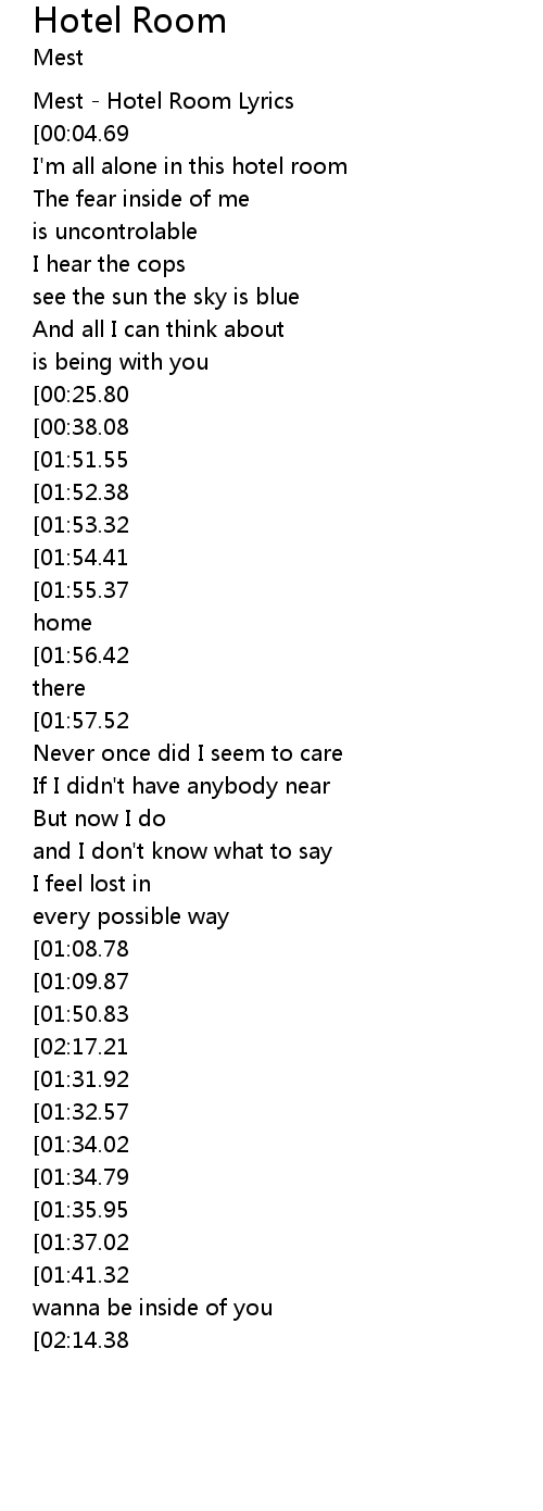 | [00:00.77] | Mest - Hotel Room Lyrics |