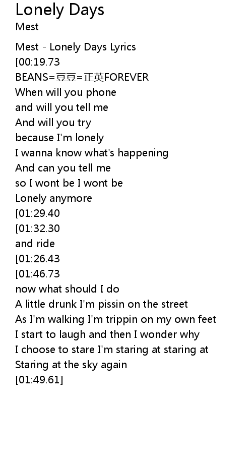 | [00:01.70] | Mest Lonely Days Lyrics |