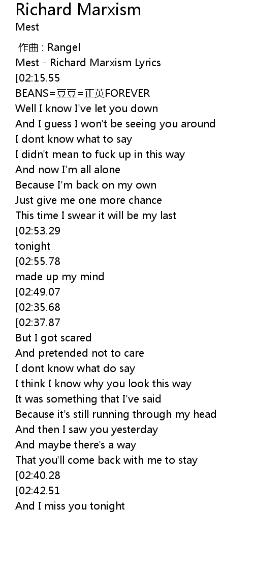 | [00:02.40] | Mest Richard Marxism Lyrics |