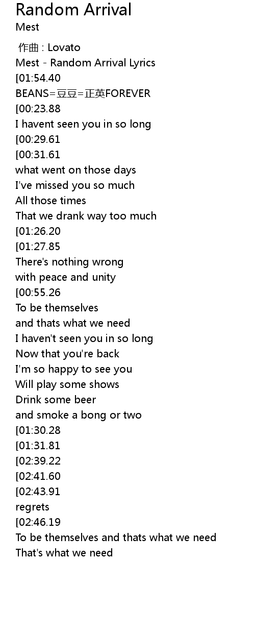 | [00:01.17] | Mest Random Arrival Lyrics |