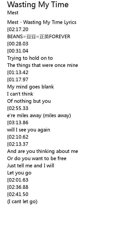 | [00:01.89] | Mest - Wasting My Time Lyrics |