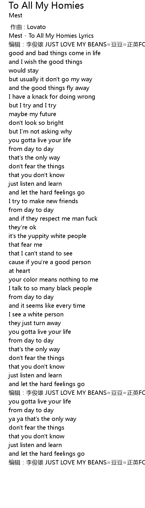 | [00:01.24] | Mest - To All My Homies Lyrics |
