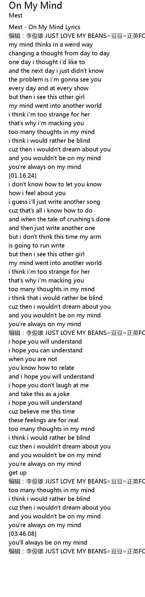 | [01:05.61] | Mest - On My Mind Lyrics |