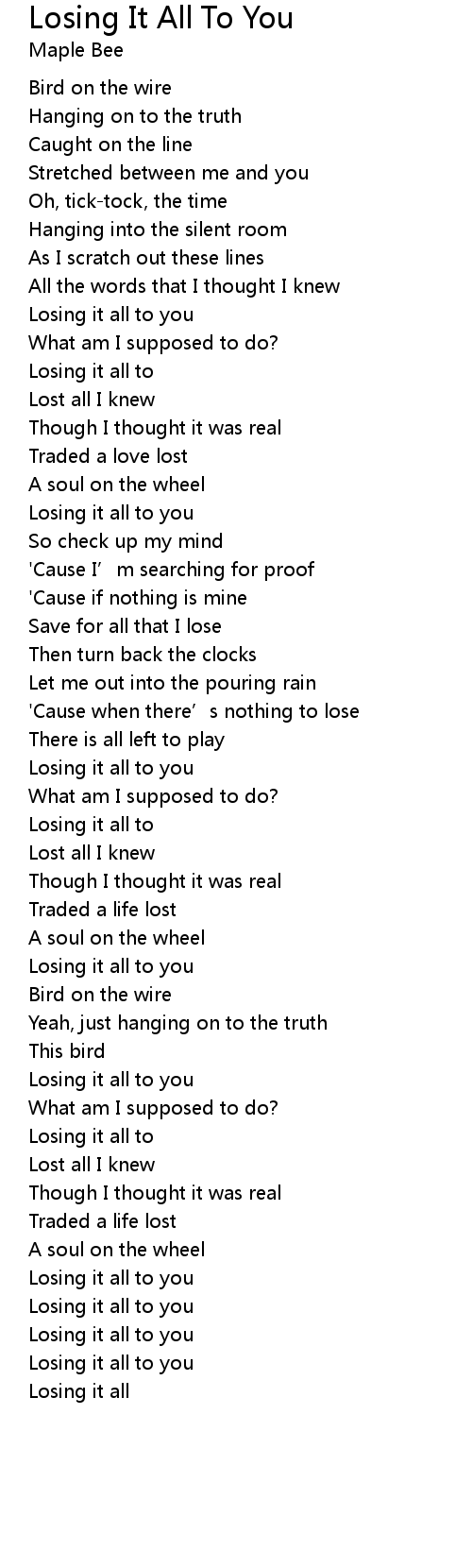 | Losing it all to you | |