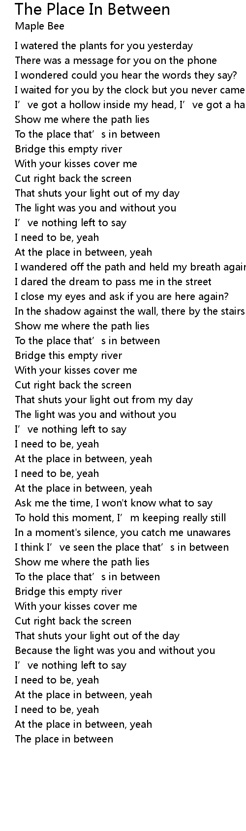 | To the place that’s in between | |