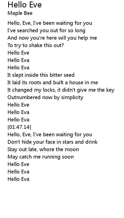 | [00:31.72] | Hello, Eve, I've been waiting for you |