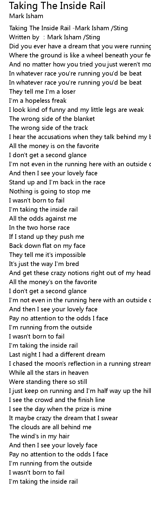 | [00:00.00] | Taking The Inside Rail -Mark Isham /Sting |