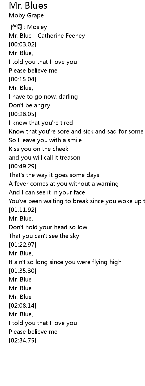 | [00:17.57] | Mr. Blue, |