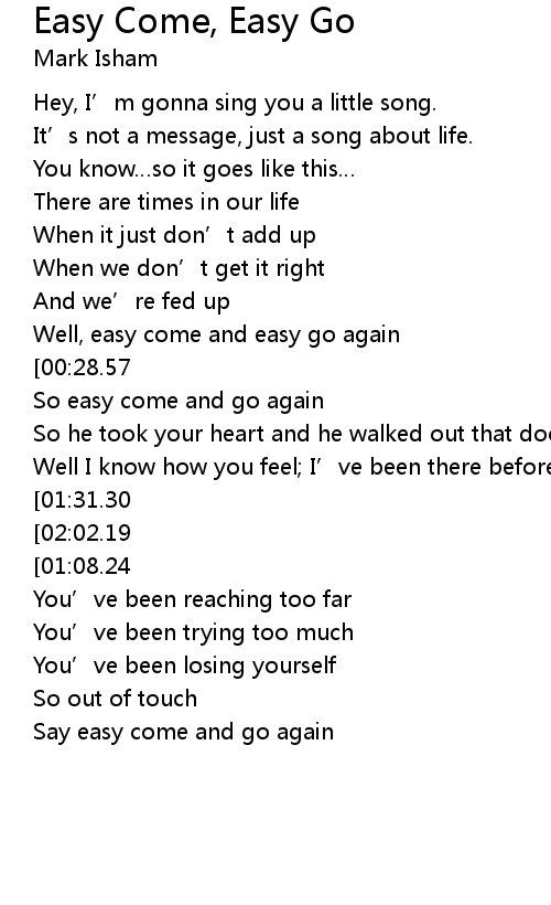 | [02:35.92][01:08.24] | I said easy come and go again |