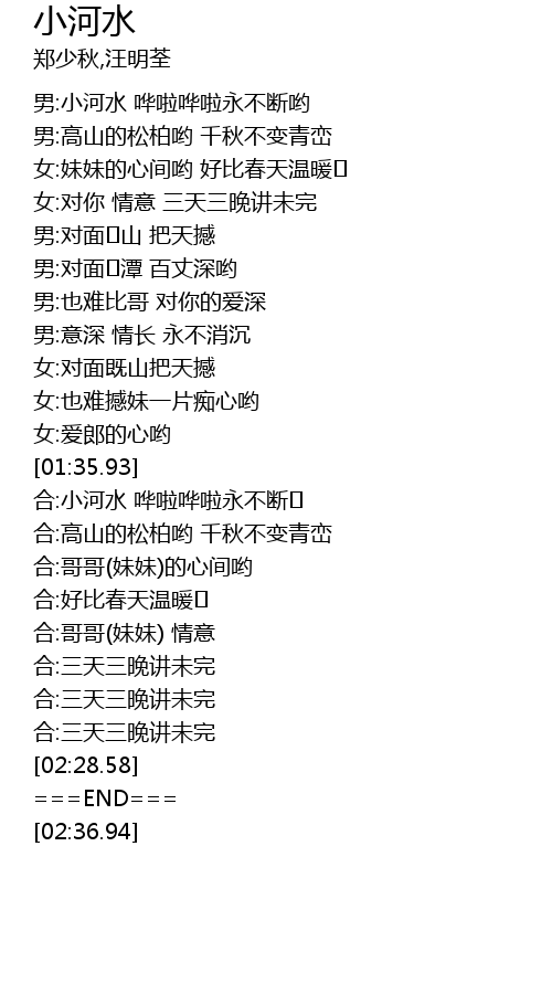| [01:46.72] | hé: xiǎo hé shuǐ huā lā huā lā yǒng bù duàn |