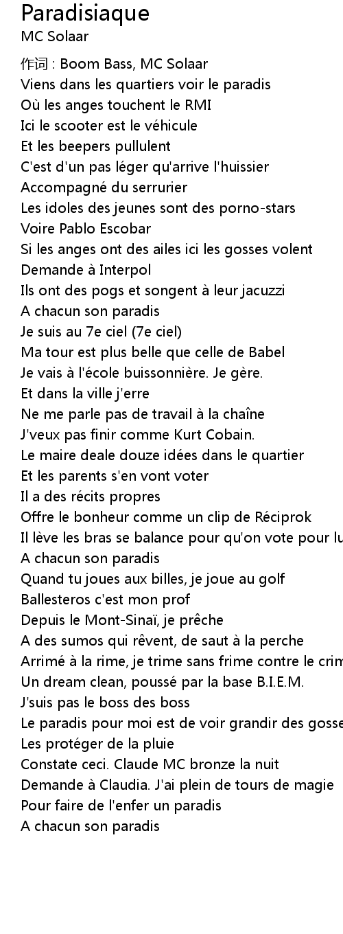 | 作词 : Boom Bass, MC Solaar | |