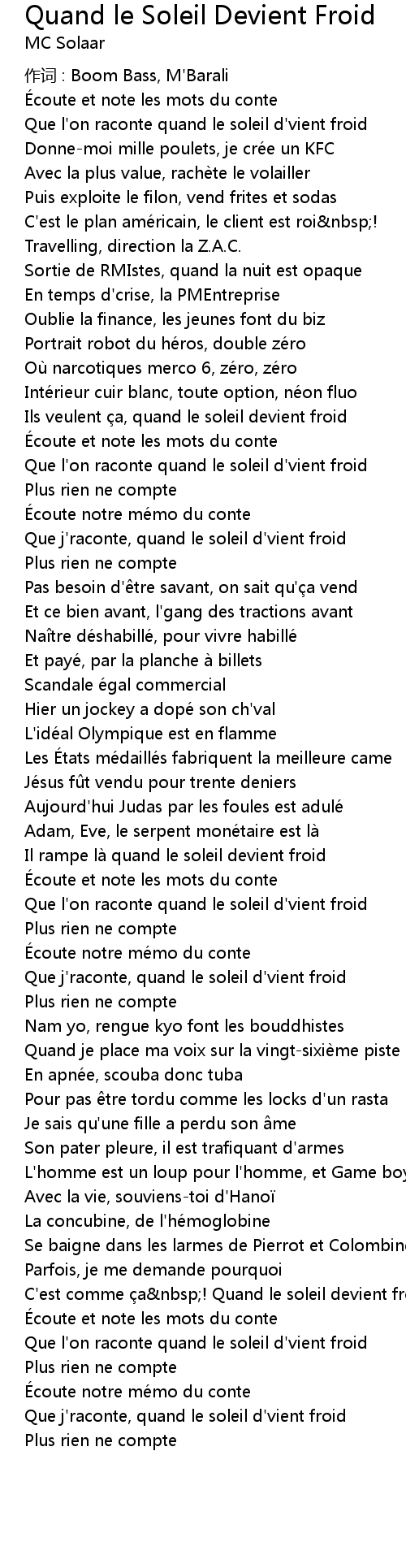 | Que j'raconte, quand le soleil d'vient froid | |