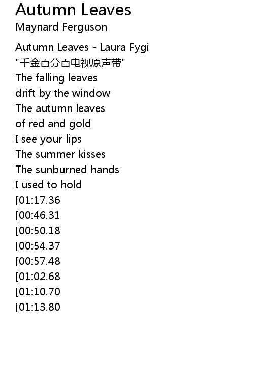 | [00:00.00] | Autumn Leaves Laura Fygi |
