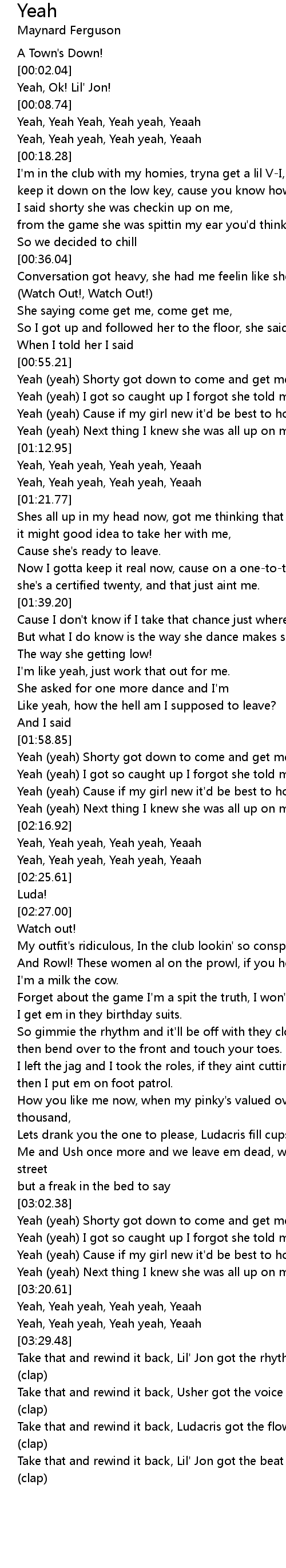 Take that and rewind it back, Lil' Jon got the rhythm make ya booty go (clap) |