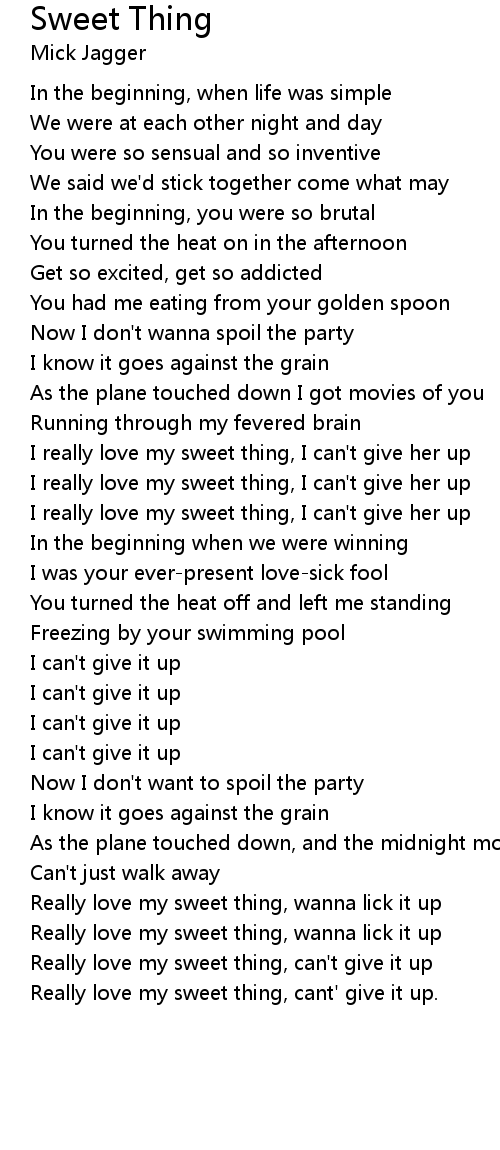 Really love my sweet thing, can't give it up |