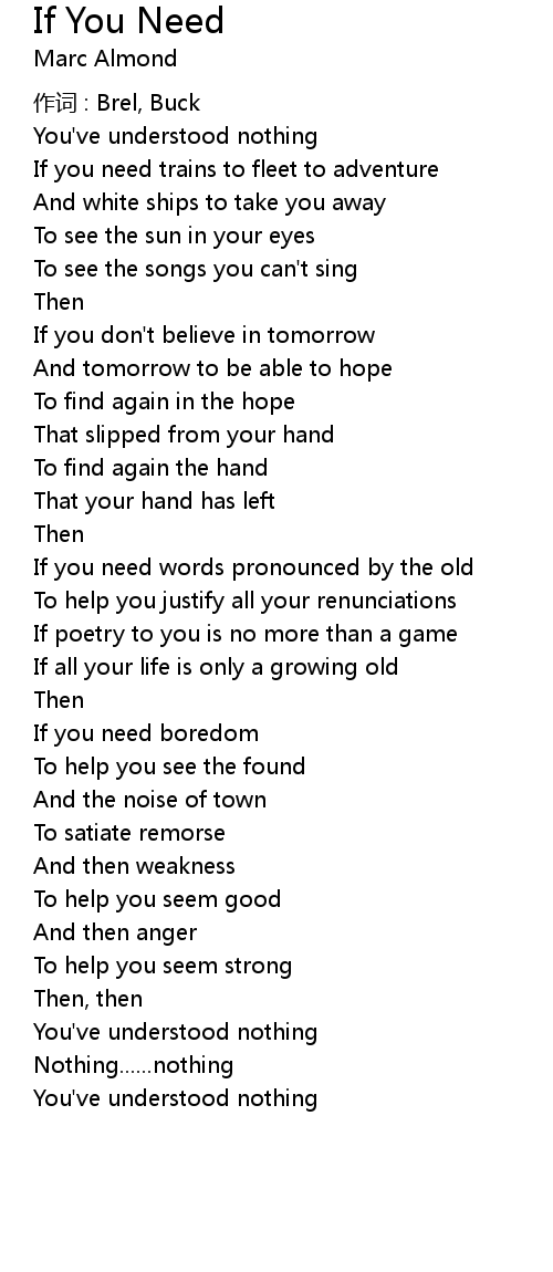 | Song | If You Need |