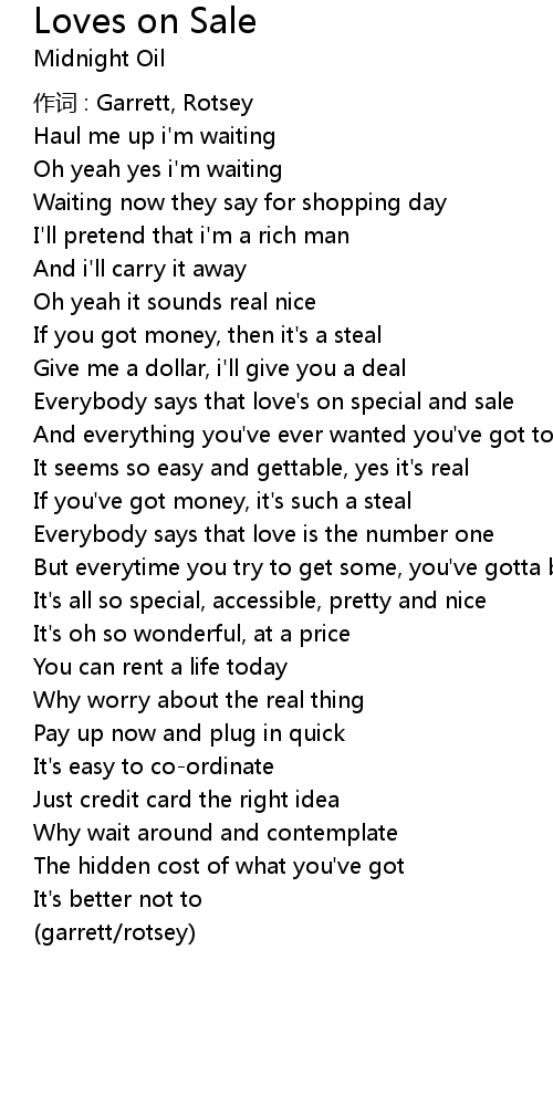| Everybody says that love' s on special and sale | |