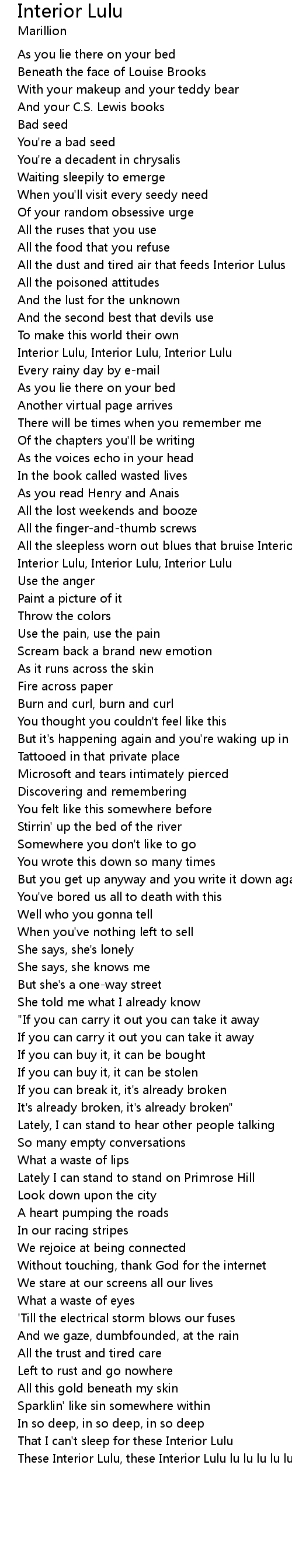 These Interior Lulu, these Interior Lulu lu lu lu lu lus |