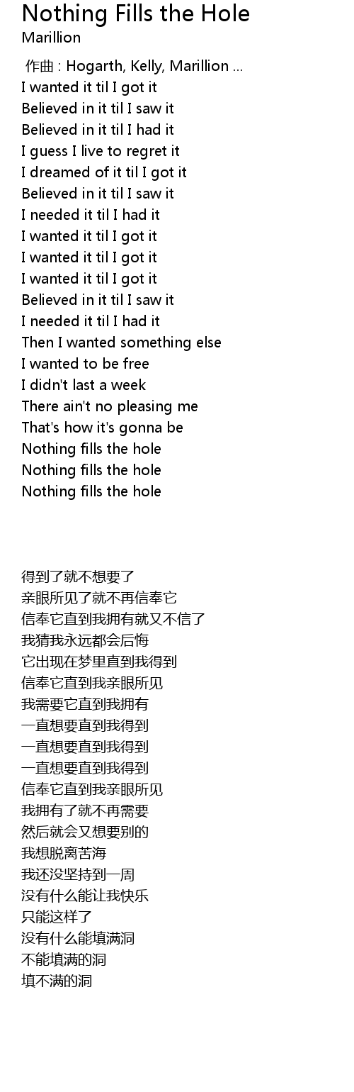 | [01:39] | Nothing fills the hole |