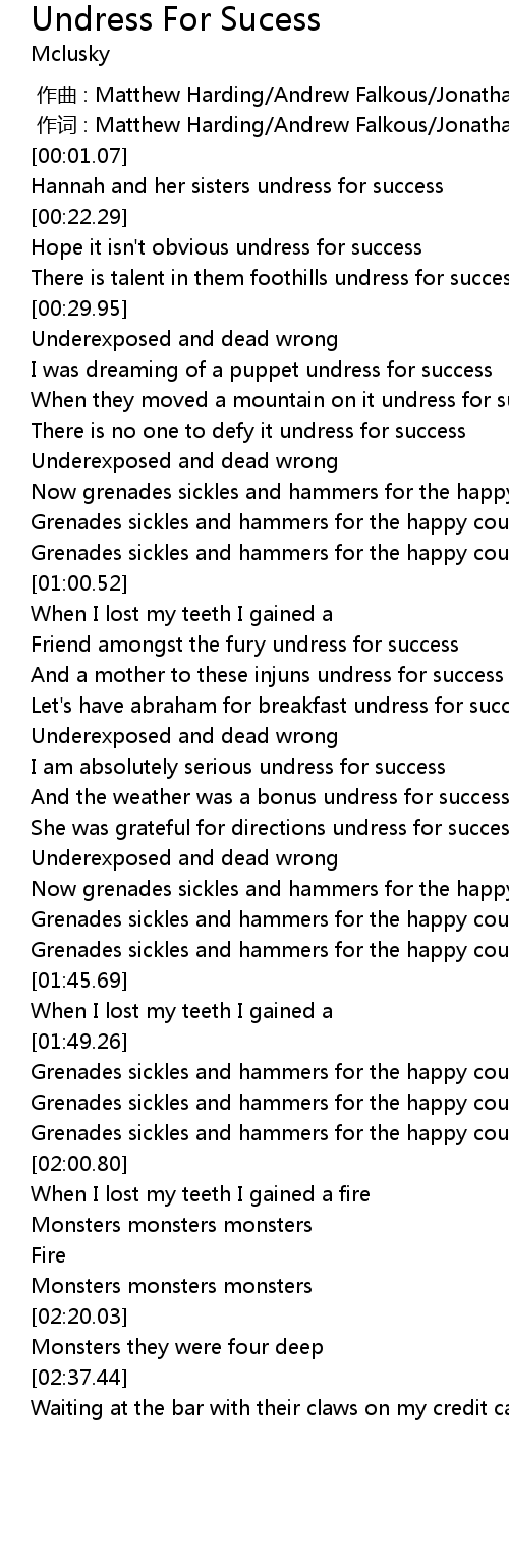 | [00:23.08] | Hope it isn't obvious undress for success |