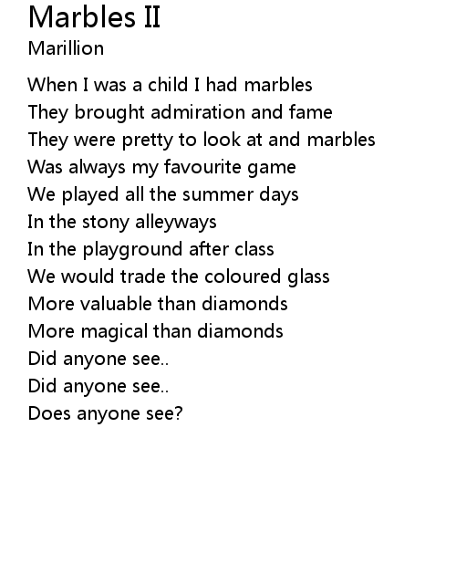 | When I was a child I had marbles | |