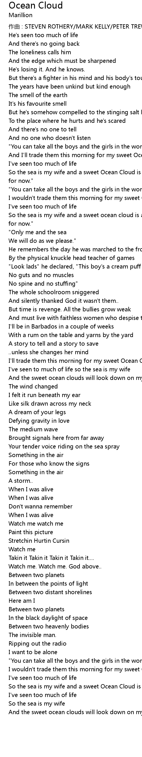 | So the sea is my wife and a sweet Ocean Cloud is a mistress I' m allowed | |