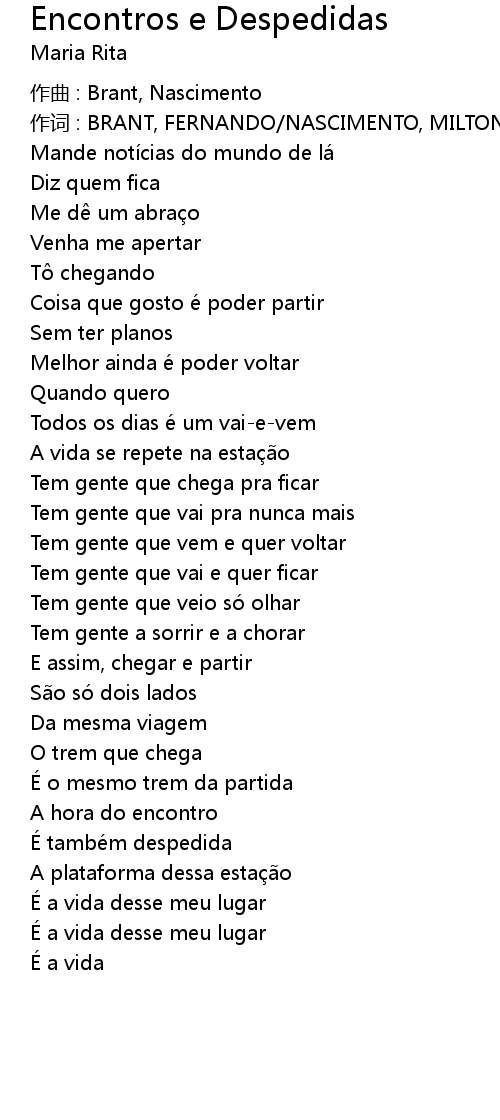 | Song | Encontros e Despedidas |