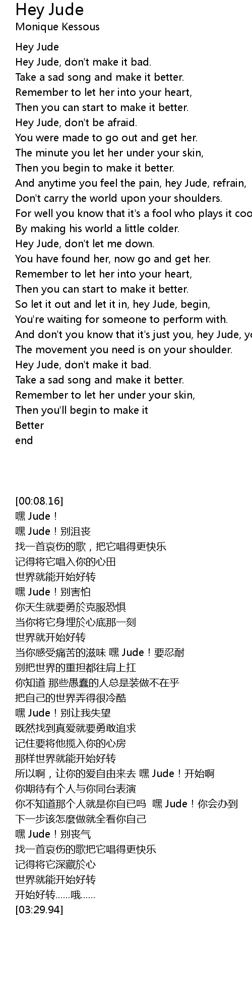 Hey Jude, don't be afraid. |