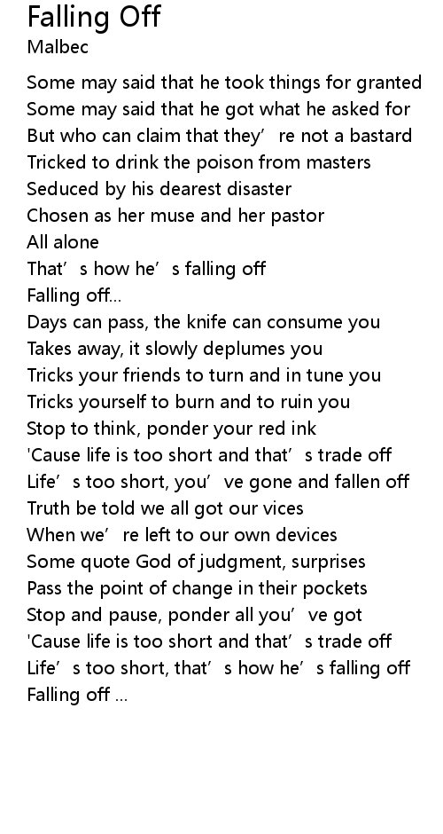 | [02:58.185] | Life' s too short, that' s how he' s falling off |